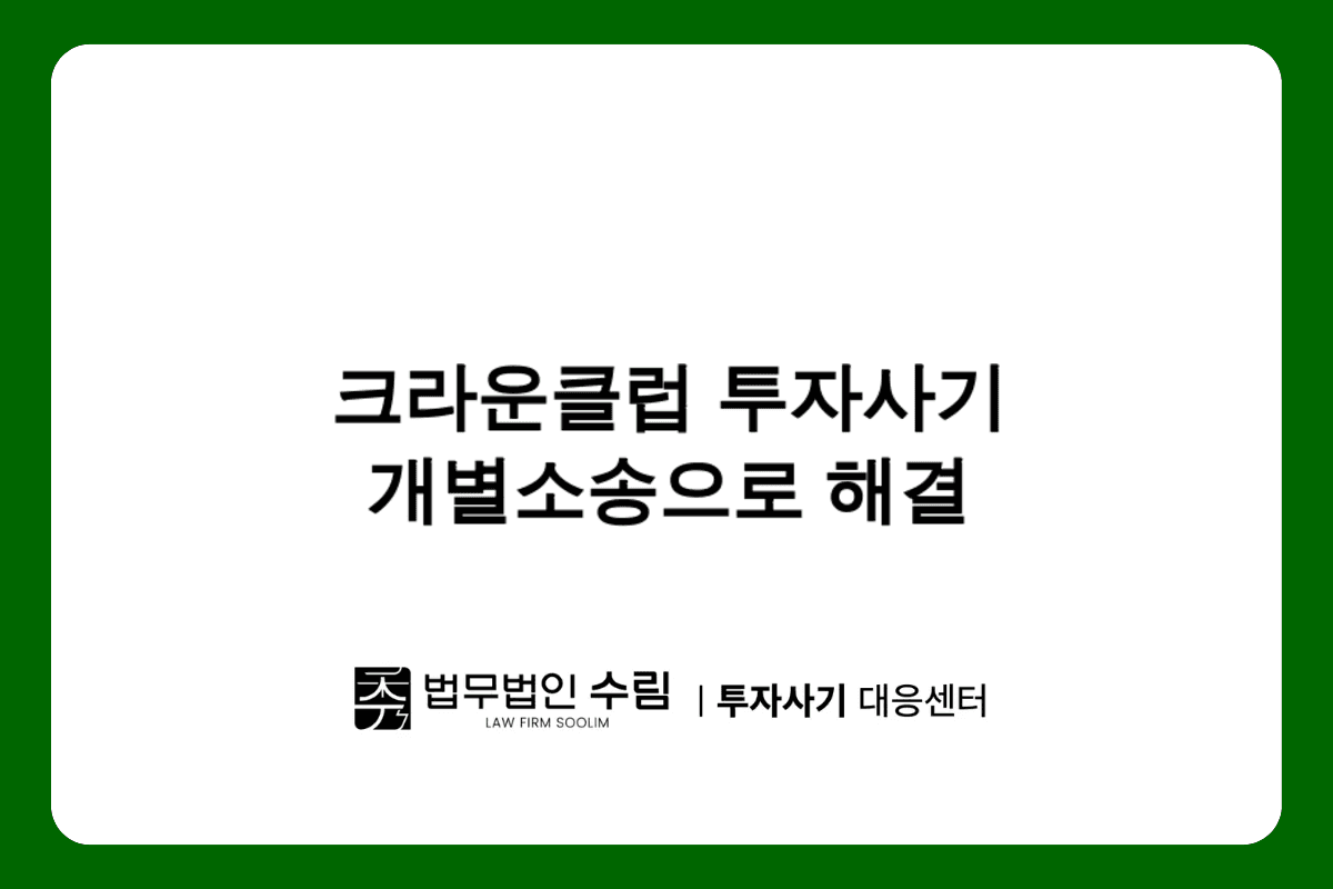 법무법인 수림 투자사기 대응센터는 크라운클럽을 비롯한 각종 투자 사기 피해자들을 위한 전문적인 법률 서비스를 제공하고 있으며, 신속하고 효과적인 개별 대응을 통해 피해자들의 권익 보호와 실질적인 피해 회복을 위해 최선을 다하고 있습니다.