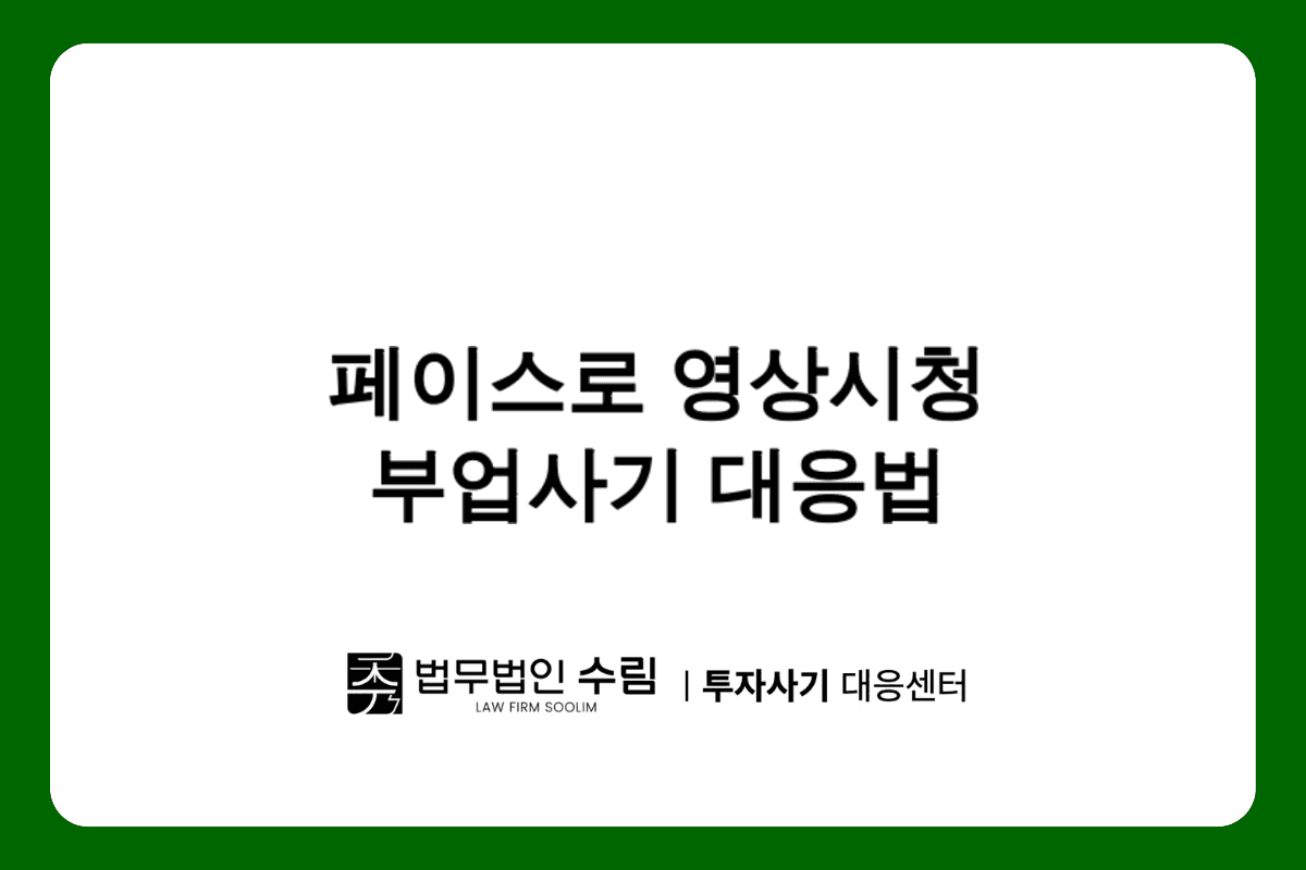 페이스로 영상시청 부업사기로 피해를 입으셨다면 혼자 해결하려 하지 마시고 전문가의 도움을 받으시기 바랍니다. 법무법인 수림 투자사기 대응센터는 이러한 신종 사기 피해자들을 위해 형사고발부터 민사소송, 재산보전절차까지 체계적이고 전문적인 법률서비스를 제공하여 피해자들의 권익 보호와 피해 회복을 위해 최선을 다하고 있습니다.